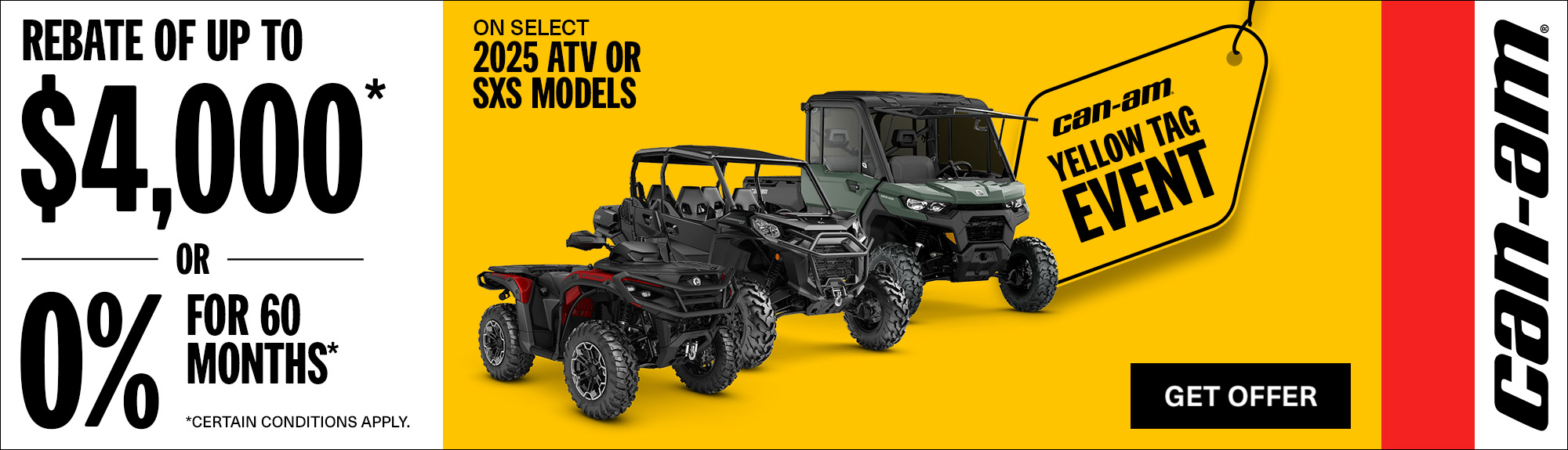 Rebate of up to $4,000 or 0% for 60 months on select 2025 Can-Am models